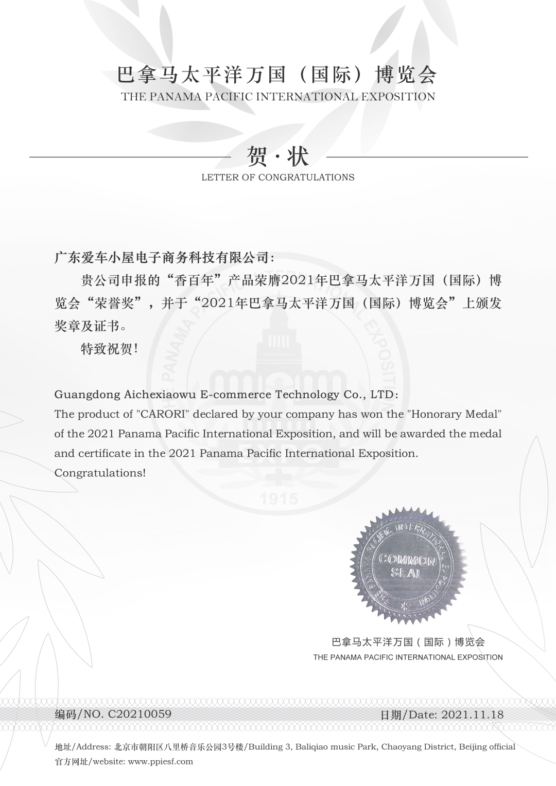 日前,香百年又傳來一「重量級」獲獎佳訊!在2021年第106屆巴拿馬萬國博覽會中,香百年可樂罐杯架香薰,榮膺“榮譽獎”!