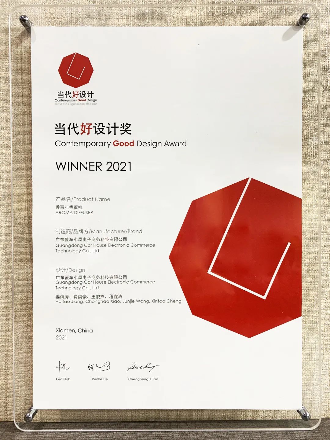 不僅如此,在2021年12月14日,香百年智能香薰機(jī)憑借獨(dú)特亮眼的設(shè)計(jì),從數(shù)千件產(chǎn)品中脫穎而出,斬獲“2021當(dāng)代好設(shè)計(jì)獎(jiǎng)”。